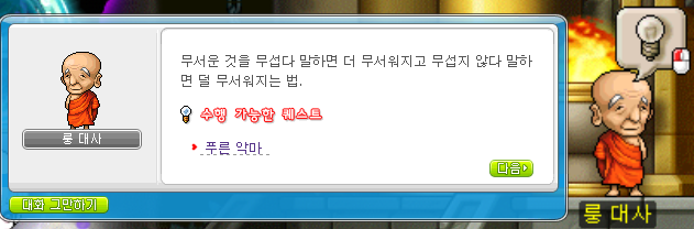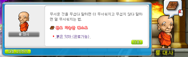 룽대사에게 퀘스트를쭉 진행해주세요